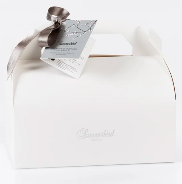 Årets kreative julekalender: en æske med 48 små nummererede pakker fyldt med økologisk chokolade. Byg din egen kalender, del den mellem to – eller skab to forskellige kalendere.