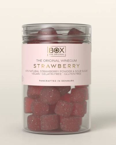 Frisk. Uimodståelig – smag sommeren i hver bid! Tag på en sommerlig smagsrejse! Vores gelatinefri og 100 % veganske Jordbær gourmetvingummi er mildt drysset med en lille bitte smule 100% naturligt jordbærpulver, indhyllet i et friskt lag sour sugar coating, der får mundvandet til at løbe. Sødme, syrlighed og frugtcharme i hver eneste bid – du vil ikke kunne nøjes med én! Just the Original Winegum – Præcis den vi normalt indhyller i premium chokolade - 170 g. Alle deres produkter er baseret på majsstivelse, og ingen af produkterne indeholder gelatine eller gluten.